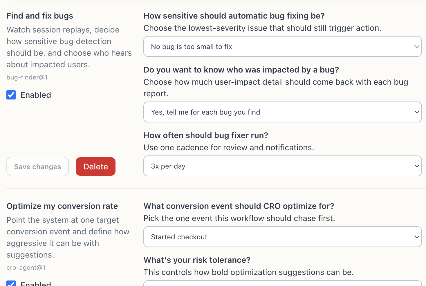 You can configure how any of these automations run—from the frequency, to the sensitivity, to the type of patterns you want to watch for.