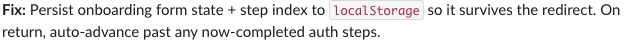 Little did we know that when you authenticated you lost all your progress from that automation and were sent back to step 1. A user then experienced this bug, and was captured in a session replay.