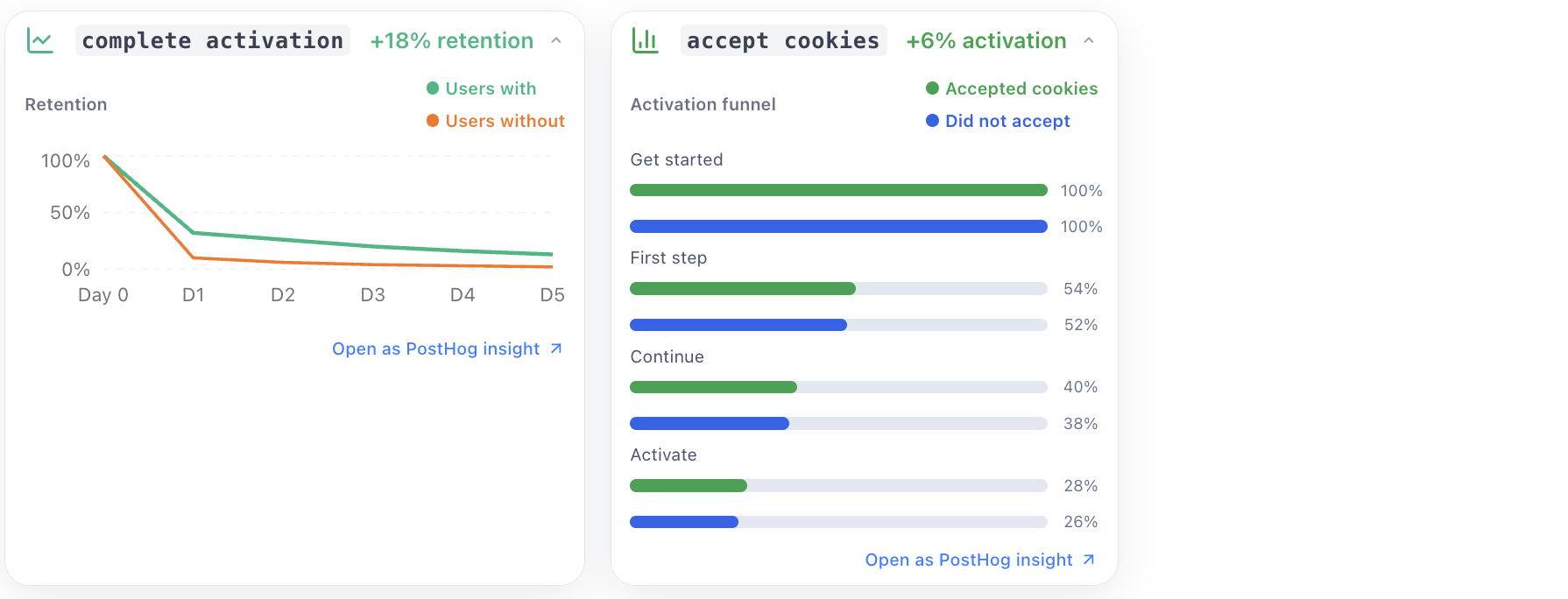 This gives us an upper bound on the potential lift associated with hiding the cookie banner in this part of the funnel. Atonomo only raises insights where the potential lift is significant enough to move an important KPI.